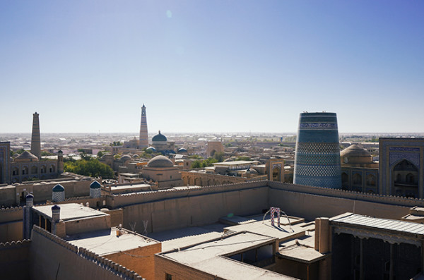 在天际线的另一边,在更遥远的地方,阿姆河正在静静流淌。它像一把利刃将“红色沙漠”与“黑色沙漠”(卡拉库姆沙漠)分开,也顺便区隔了乌兹别克斯坦和土库曼斯坦。经过花拉子模后,它将转头向北,奔向咸海。