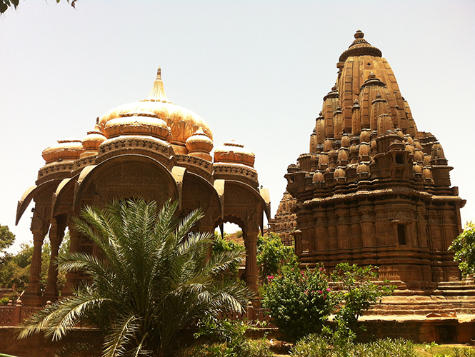 另一个没想到,在去曼多尔花园(Mandore Gardens)的路上被小偷盯上了。曼多尔花园在焦特布尔郊区,火车站附近的1路公车就能到达。佩服印度人,很多公车站基本没站牌,他们都是如何找到候车点的?靠口耳相传?反正我是向好几个印度人打听印证后才找到的候车点。去曼多尔花园之前,先找家餐厅吃了个午饭,餐馆伙计找补的几十卢比零钱我顺手就放裤子口袋了,一时没装进包里。等下了公车一掏口袋,钱不知何时没了。在印度旅行,我一向把自己的包看得很紧,之前也没出过什么问题,这回一时大意,钱就没了。