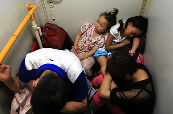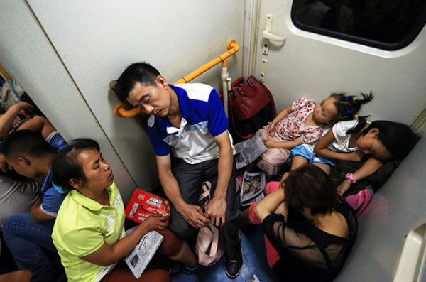 列车每一次停站,就会有很多成年人走进车厢,每一个成年人就能带上一村的孩子,于是车厢里挤满了大大小小的孩子,从车座底到洗手池上都是。他们的脸总是很容易脏,却也个个穿着花衣裳。在这样的暑假,他们要到大城市去,等待着他们的是一场与打工父母的团聚。