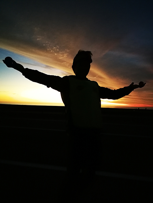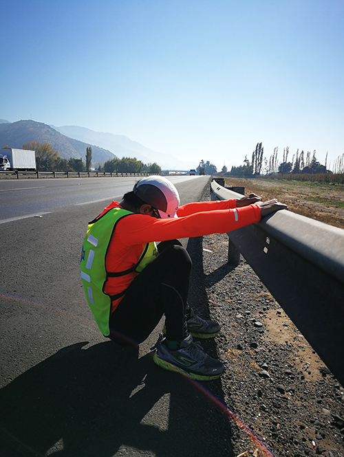 白斌在沿海的两公里车道上不停折返。