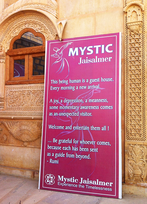 早晨6点多,四周已经亮堂得如同午后(后来我才知道,这里午后的太阳简直可以用“毒辣”来形容)。我拉着行李,站在寂静无人的门口,被一块桃色牌匾上鲁米(Rumi)的诗吸引了目光: