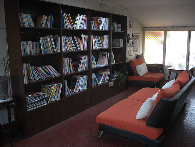 (一个舒适自在的公共书房,也是青年旅舍的配备)