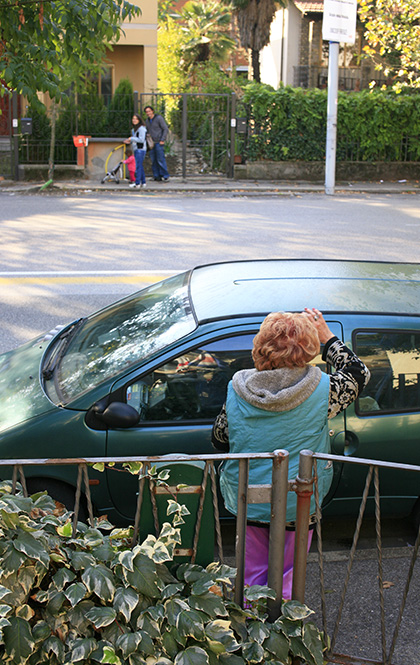 她的家距离佛罗伦萨市中心有十几个站,我到佛罗伦萨时已是傍晚,从火车站出来,先去玩,跟着导航走到了亚诺河边,河中有人在划皮划艇,金色的阳光斜照下来,桥上人来人往。我与众游人挤站在桥栏边,此时,身后传来两个姑娘用中文在聊天。两位女学生已经在意大利学了一年语言,刚完成艺术学院的艺术考试正在等成绩,她们说国内的艺考大军太凶猛,她们和很多中国学生选择了转战国外艺考,似乎比在国内容易些,但需要更多的钱。她们看了我的客栈,摇控同学帮我在网络上查到了乘车路线,送我到车站,我上了车,并不能确定哪一站下,直坐到了终点,终点在郊区的郊区,空寂的车站站台上,居然坐着一位中年女子,她给我要住的客栈打了个电话,告诉我在哪一站下。