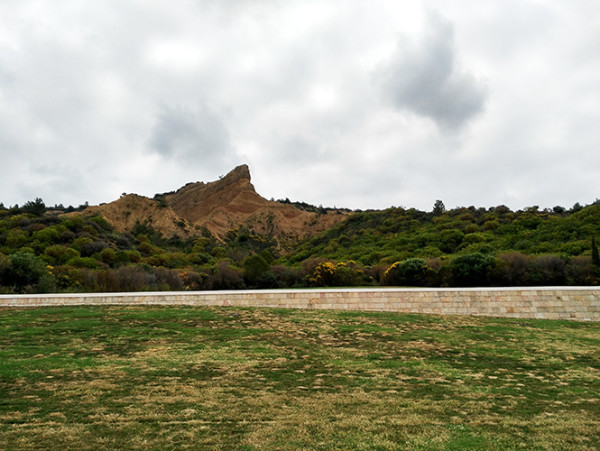 转身背对大海,一座状如鹰嘴的山崖耸立,两翼的山坡向海岸延展,挤压着这一小块平坦的斜坡。三座无名的山峰在战争中有了名字。中间高耸的是查纳克拜尔(Conkbayırı),左右两边分别是战舰山(Düz Tepe)和971号山(Kocaçimen Tepe)。我不知道命名的由来,但我知道,它们挤压的地方就是我们伫立的位置,如今称作“澳新军团湾”(Anzac Cove)。