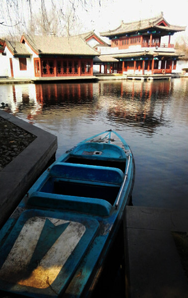 范公亭公园很大,一进门就可以看到一排共享单车,不收门票。洋溪湖湖面结着一层薄冰,湖心有几丛枯干的芦苇,但感觉不太冷。岸边有亭子有树,不远处是青州的旧城墙,只是没有远山和骑马的旅人(如果有还真就矫情了)。