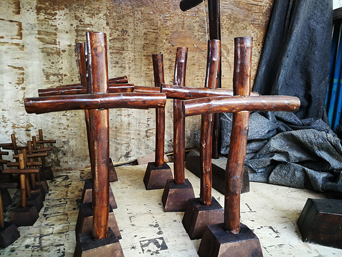 家门口就是摊位,摆布着大大小小的十字架,都是用驴子驮的那种木头做的。Luna想买个十字架,被我劝阻了。我的意思是,如果不是信徒,还是不要随便买这样的物件为好。