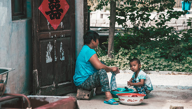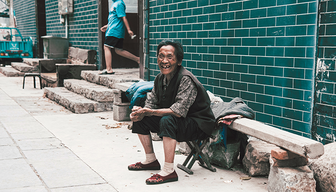一位老妪坐在木头上休息,黝黑的皮肤与脸上深深褶皱,像极了罗中立《父亲》中那位老者。我拍下她泰然的样子,却在探身偷瞄她的院子时被发现。老妪开口说道:“好多人拍我这个房子。”得意的神情溢满双眼,脸上的褶皱更深,皮肤泛起兴奋的光晕。