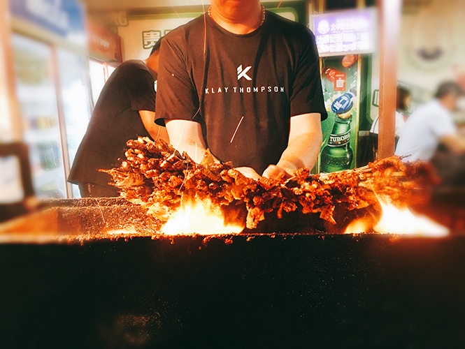花园烧烤是一家网红烧烤店,开在居民楼下,全店只有十张餐桌,因此很多人排队,在饭点时等位两小时是常有的事。入座,桌子中央是凹下去的炭火槽,店员加了炭火,放上网格,刷点油,铺上菜,开烤。不知是不是心理作用,总觉得炭火烤的好吃点,可能就是喜欢那股烟火气吧。