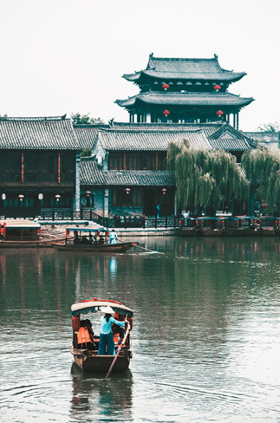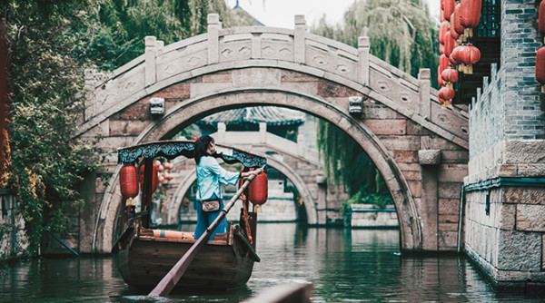 以南北走向为主的京杭大运河,台儿庄河段是唯一一段呈东西流向的河道,据说也是唯一一段保存了运河原貌的河段。古城已发生了天翻地覆的变化,流水却还是那个流水。它穿城而过,不知疲倦地奔流,不会为古城枯荣而停,不会为运河繁落而停,不会为生死离别而停。时间好像就这样随着它的奔流而奔流,不会为任何而停。