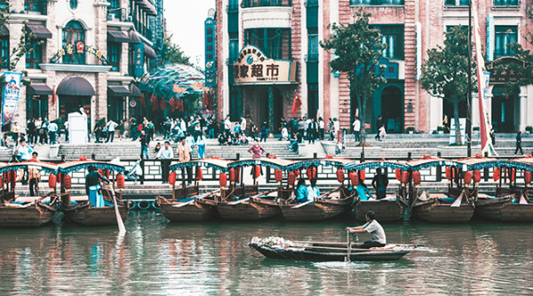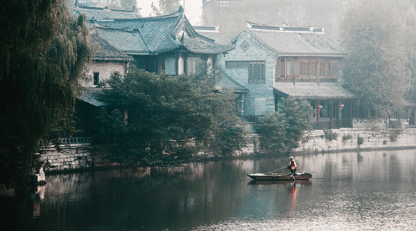 六点,通红的太阳刚刚升起,阳光穿过迷雾,洒在广场一旁的运河上。宽阔的运河褪去旧日帆帜如林的繁华,朴实地环绕穿行古城,从容优雅。一支孤舟浮在河面上,打捞河里生长过剩的水草。一圈圈涟漪泛开在水面上,碰到阻碍物又荡回来,周而复始,逐渐趋于平静。