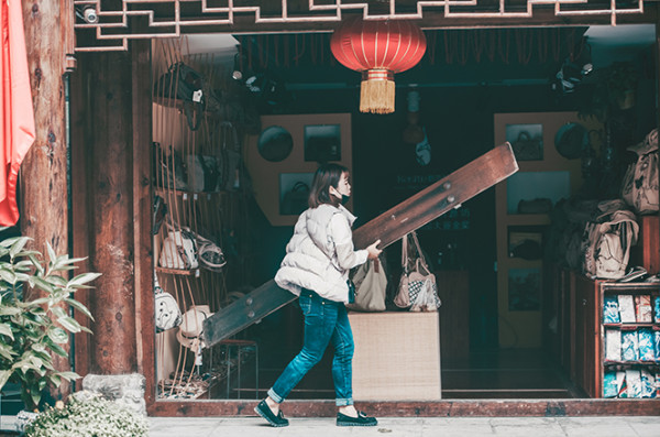 我站在船形广场上,望着台儿庄的清晨。晨雾笼罩中,街道上留下的尽是昨夜欢靡。一个完全商业化的古城中,早已没有居民,出现在这里的人通常只有两种身份,打工者和消费者。打工者会早早地出现,消费者会迟迟不肯离开。