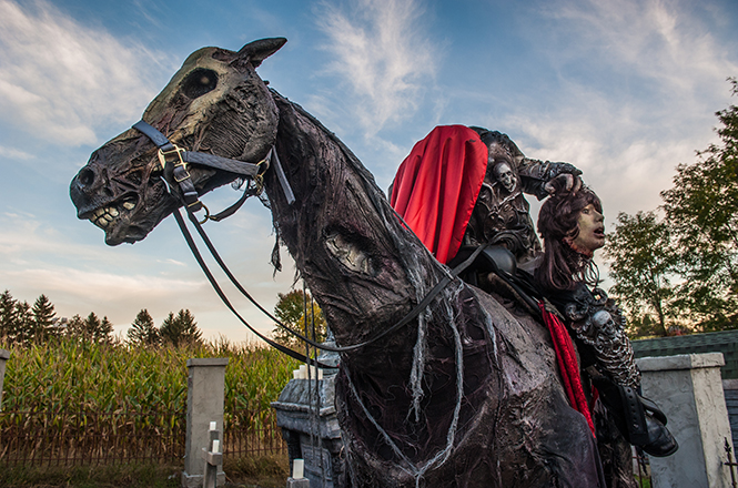 没人知道作为作家兼旅行家的欧文所写的睡谷究竟在哪里,但阿尔斯特的Michael给出了一个答案。他的“无头骑士干草车巡游&鬼屋冒险”之旅游乐园已经经营了25年之久,最初的35名员工到今天为止增长到了300名。一匹会喷火的骷髅马站立在游乐园的入口,不时抬起前蹄直立嘶鸣,它背上驮着看起来远没有马儿可怕的无头骑士。