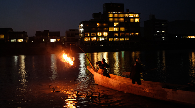 1921年,作家川端康成才22岁,他来到了长良川,在此写下一则短篇小说《篝火》,小说中的女主角“道子”的原形是作家的初恋对象。失败的初恋成为作家难以愈合的伤痛,他为此先后写了数十篇小说。在《篝火》中,“我”与“道子”一同见到了鹈饲,船头的篝火阑珊,“于是,我拥抱着红彤彤的篝火,凝视着道子那张在火光映照下的忽隐忽现的脸。在道子的一生中,这样艳丽的容颜,恐怕很难再现第二次了吧。”