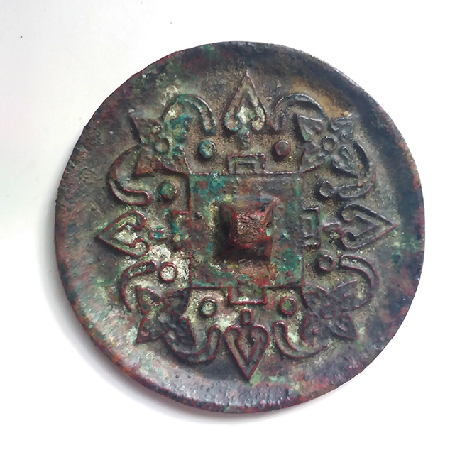 天宁寺边上,有一家农贸市场,里面杂七杂八什么都有,从花卉到水产品。从天宁寺出来后,我通常都要去买一些狗粮,我们家的狗尤其爱吃那儿的薯条。另外,这家农贸市场里还有一家古玩店,老板姓张。我从他那儿买过几件东西,其中有一件商周时期的铜镜,纹饰独特(异域风情),上面布满红斑绿绣。它只有巴掌大小,一看就不是实用器,而是用来馈赠亲朋,或者用于辟邪。这要说到因为风水原因,天宁寺附近临街的几栋楼房,我注意到几乎每家每户冲东的窗台上,都会挂着一面小镜子。这种境况以往只有在南方才能看到,就当它是民间的封建迷信。