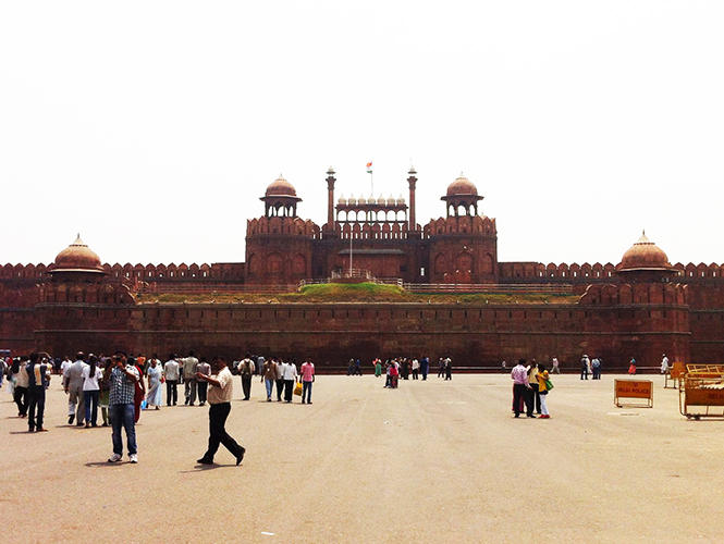 在红堡的几座城门中,最有气势的当属西边的拉合尔门(Lahore Gate)。1947年8月15日,印度首任总理尼赫鲁就是在拉合尔门宣布国家独立,其象征意义类似于我们的天安门。虽然我对印度著名景点有外国人票价和本国人票价之分的做法颇为不满(比如,红堡外国人门票250卢比,本国人只需10卢比),但有些景点即便“被宰”也值回票价,红堡即在此列。