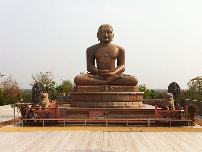 参观完顾特卜塔建筑群,慢慢走回Qutub Minar地铁站,路上看到一座颇“孤僻”的伊斯兰建筑,立在半山腰,无人问津,遗世独立的样子,嗯,好看。没有近前,继续走着,又路过一坐落于山上的耆那教寺庙(Jain temple),也是人迹罕至,可以免费参观,守门的印度人很和气。耆那教是印度古老的宗教,其创始人伐达摩那(Vardhamāna)反对种姓制度,反对暴力,主张和平主义……据说甘地就曾受耆那教思想的影响。半山腰上有伐达摩那的雕像,脱了鞋,跟着寥寥信徒到山上走了走,俯瞰周边景色,视野甚为开阔,亦算额外收获。