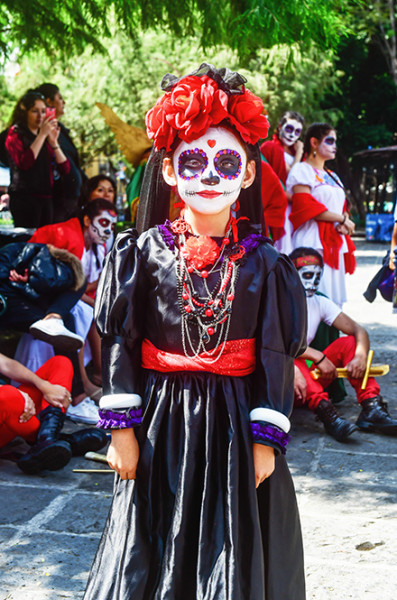 每年10月底11月初,是墨西哥举国欢庆亡灵节的日子。这个节日源于阿兹特克历法连续两个月的幼灵节和成灵节,在融入了殖民时期的天主教后,成为现在我们所熟知的亡灵节。11月1日是幼灵节,祭奠死去的孩子,2日是成灵节,祭奠死去的成人。此前看的攻略上说,这两天在Tzintzuntzan镇和Janitzio岛都会有墓园party,但其实只有1日晚才有,具体选择Tzintzuntzan镇还是Janitzio岛就看个人了。除此之外,今年10月27日墨西哥城还有亡灵节大游行,可惜那时候我在纽约没有赶上,据说这个大游行并非传统,而是因为电影《007:幽灵党》的拍摄需要而举办了一次,之后这个活动就被保留了下来,今年已经是第三次了。