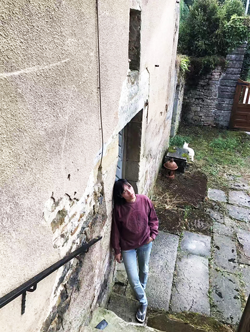 (在老宅前留影,身穿的“哈佛”套头衫不知道是哪位客人留下的)