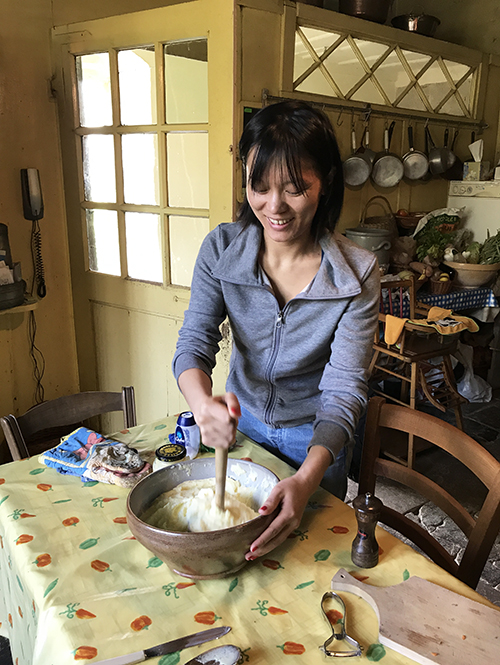 就像美丽的花有许多品种,法国女人也有很多种。她就是那种淡然,温暖,有些内向,虽有主见但并不固执己见。相处的一个星期,从未见她动过气着过急,就算她的女儿请来几个朋友,其中一个据说她并不喜欢,他们之间的相处也是很和睦。她的女儿生活在巴黎,是那种很挑剔的巴黎态度,在乡间这几天,她吃的所有食品,无一不出自自己的烹调,她对做饭很着迷,经常买来做饭类的杂志,看到什么想吃的菜就依菜谱去采购然后就开始在厨房做饭。有人对买衣服上瘾,她是对做饭上瘾。沾她的光,我们也吃到了好几顿特别有趣的料理,比如两种不同口味的烤披萨,比如西瓜加奶油做的汤。