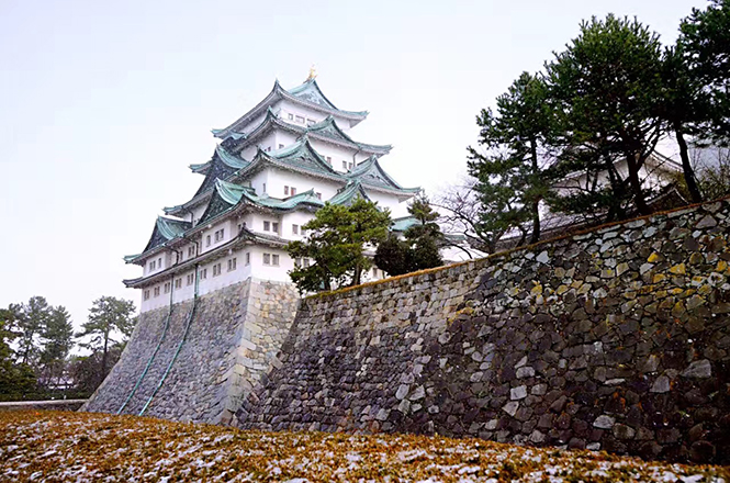 (在雨夹雪中参观了名古屋城堡)