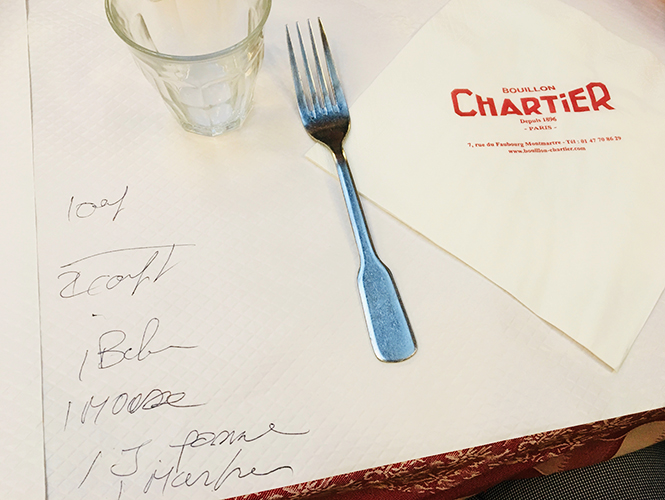 (Boullonchartier 的服务员会把点单写在桌子上)