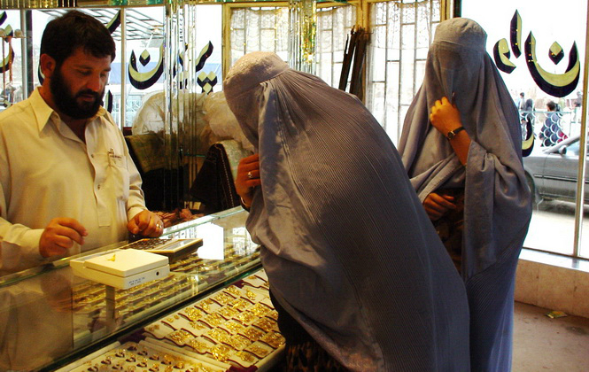 阿富汗女人非常喜好金首饰。不论在首都喀布尔,还是其他城市,几乎都有金店一条街。女人在金店“血拼”的场面并不次于其他国家女人购物的场景。