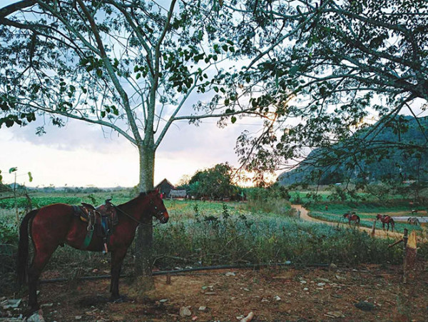那天我去山谷里骑了马,傍晚回到比尼亚莱斯时已经灰头土脸。我急匆匆跑去厨房喝早上剩下的木瓜汁,一回头才发现老太太正微笑看着我。厨房大概就五六平方米,我猜他们平时只用屋外的锅烧饭,因为老太太就住在厨房里。真的很小的一张床,比火车上的卧铺也宽不了多少。又想起昨天男主人看电视时的局促,我就真的很为自己前一天的恶劣态度自责。也许这里的条件是很有限,确实也有一些人只想从外国人口袋里捞钱,可至少这家人已经竭尽所能给客人提供最好的东西了,不是吗?他们的后屋是两幢十几平方米的平房,右侧拉着几根晾衣绳,中间是一张饭桌。他们并不富裕。我在前屋所拥有的起居室、饭厅、卫生间、卧室比他们一家五口人(夫妇俩还有另外一个小女儿)的生活面积都要大。