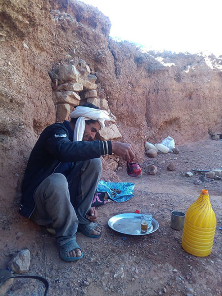 那是一个小卖部,昏暗、窄小,灰扑扑的货架上摆着些鸡蛋和便宜糖饼。异乡人要了一瓶水——瓶身留下她清晰的指痕。是啊,这样的地方,除了偶尔误撞而入的旅人,谁会买水喝呢?就算在非斯(Fes)那样的大城市,普通百姓也不会买矿泉水。许多街巷都有公共饮水处:龙头会有一根绳子拴着个塑料杯。人们渴了,就拿起杯子冲一下,接上一杯。也有老人推着大陶罐——里面盛着清凉山泉。人们要么直接瓢饮,要么拿用过的空瓶装,价格合约人民币五角。