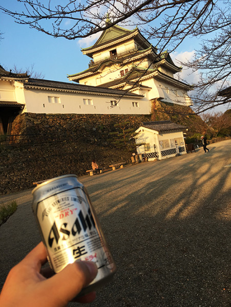 我住在“纪三井寺”这一站,稍有经验的想必可以猜出,本地因寺得名,只是我来的地方寺庙众多,一开始并没有在意。谁料没过几个时辰,也就是“大晦日”——日本的除夕夜——当天晚上临近午夜,我站在阳台上,寒夜里,乘着酒兴,抽烟,准备跟旧年沙扬娜拉(徐志摩语)。偶然间眺望,不远处半山腰一所橙色寺庙灯火灿烂,好不眩谧,正恍惚中,喜闻钟声悠悠飘荡而至(相传一百零八下),不松不紧,恰似旧岁的浅吟低唱缓步谢幕,真真有——日月之行,若出其中,星汉灿烂,若出其里——的千年壮语之感。往事越千年,魏武挥鞭……我想到的还有很多很多,奈何身披短衫,不堪冷风搜身,又念那泡沫丰盈的札幌黑色五星啤酒(其实老款的红色五星最好喝,只是越来越少了,跟许多事物一样,越更新越完蛋),只得放下痴痴的感悟,转身推窗,重回温暖的室内,温暖的海鲜火锅旁……傍晚前,骑房东提供的自行车去超市买了酒水大米食物调料日用,整整背了一大旅行包——我的旅行包每回就是干这个用的。
