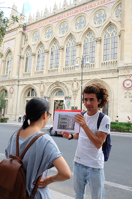 如果你对巴库的建筑文化感兴趣,可以在FaceBook搜索Baku Original WalkingFree Tour,团队以红伞为标志,导游是一个曾经在国外留学的可爱年轻人,他会带着你走街串巷,讲解建筑背后的故事。不过记得要在线预约哦。