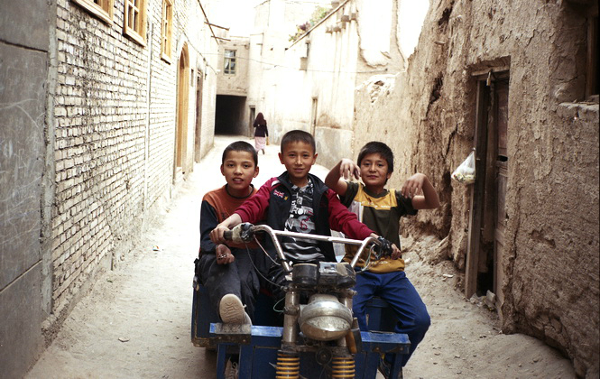 我拖着一条腿走了两个小时才看到一辆车路过,可惜我们言语不通,我只好展示我的伤疤给他看,最后我爬上他的车后座,来到这个南疆小镇。这是个全穆斯林的小镇,孩子们围着我,手里拿着石头。一个山羊胡子的中年人过来解救了我,我一紧张就开始跟他讲英文:"Salama, I need help."他用一口中东英语回答:"How do you do."