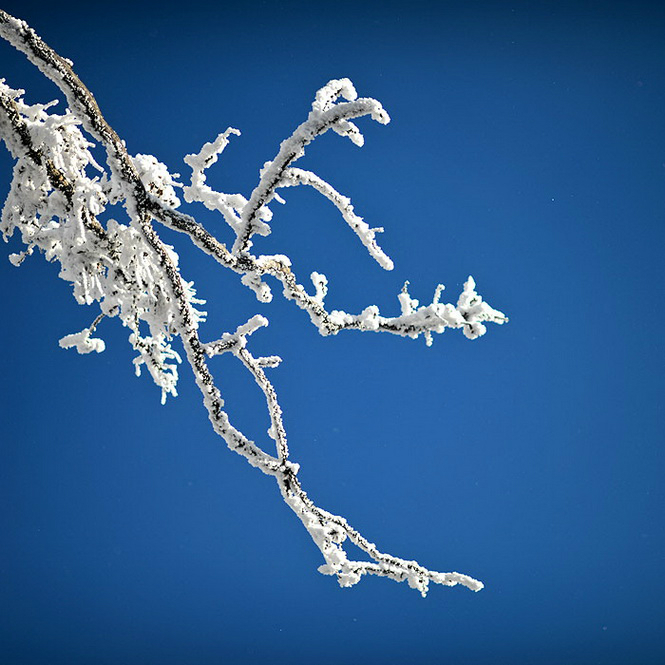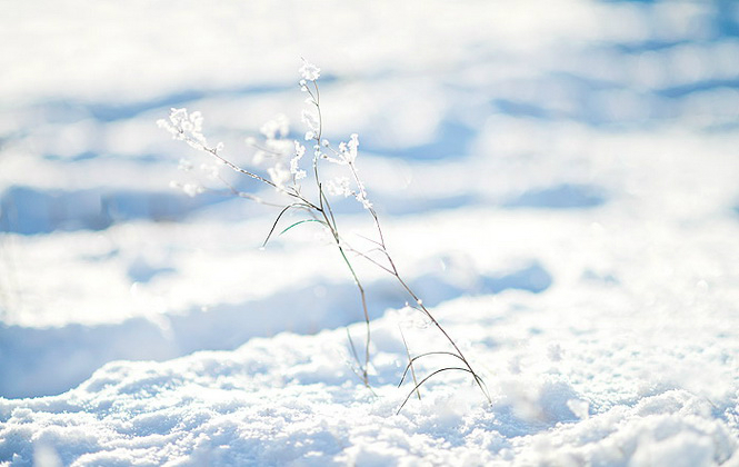 经常会在雪地里蹲下,认真看一株小草,枝条上的积雪,像冬天开出的白花。
