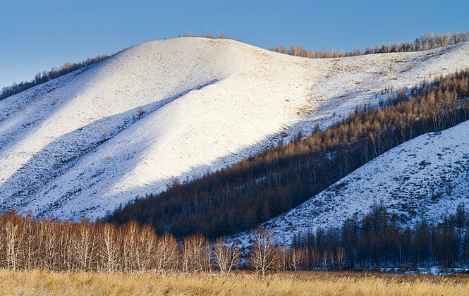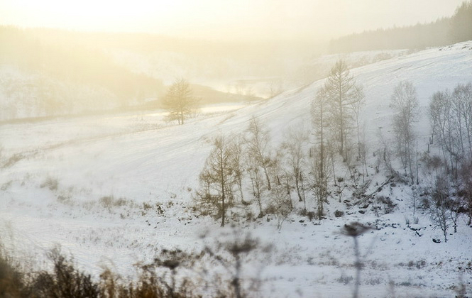在阿尔山冷寂的冬天,零下三十度的户外,我独自踩着厚厚的只有野兽足迹的雪,爬上一座小小的山头,脚下的雪发出“哗吱” 、“哗吱”的声音,厚度估计有五十厘米左右,踩下去的时候,雪会倒灌到靴子里。