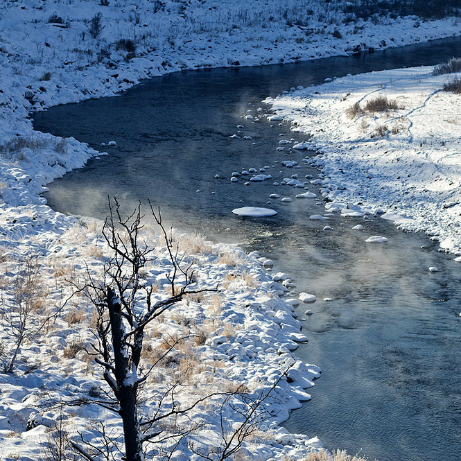 夕阳里的不冻河,山谷天黑得很早,三四点就没了阳光。