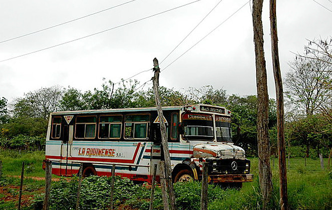 【图片】巴拉圭的秋雷乡下,一辆老旧奔驰公交车