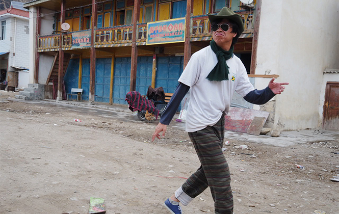 (庞小伙极具表演欲,在察瓦龙的街上,他想让自己成为一个持枪的西部牛仔)