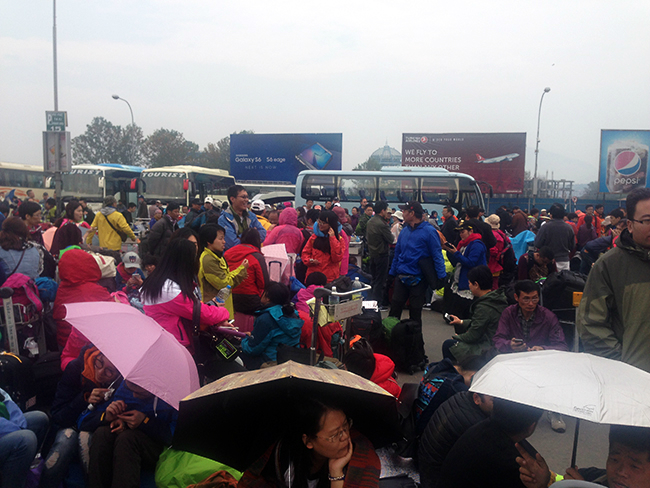 一路上,我紧紧拉着Khan的手,看着这个深爱我,同样也是我所深爱的男人,突然觉得没有什么能把我们分开了。我们在15分钟后到达了基本瘫痪的机场。在与中国救援队联系过后,我找到了中国解放军。那一刻,我就像个只是想哭的孩子一样,五味陈杂。尼泊尔机场滞留了超过800名的中国游客,而中国国航则是第一架降落在加德满都特里布万机场的民用飞机。行李托运,安全检查以及登机检查,都是中国驻尼泊尔的国航工作人员以及中国的空姐和空少们完成的。每天国航有4个航班,南航有3个,川航和东航分别是1个。在这里,能离开这个机场的“难民们”只有中国人和印度人。别的国家的人依旧滞留。中国驻尼泊尔大使馆武官刘晓光,从地震两点多一直待在这里,陪着我们这些滞留在尼泊尔的旅客。这个时候,作为一个中国公民,你才真正体会到祖国的强大。