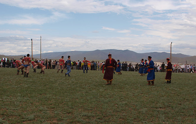 医院领导邀请我们进他们搭的蒙古包,请我们吃肉喝酒。我因为吃素拒绝了吃肉,当然没有素食可吃,能做的只有掩饰我的宿醉,早晨九点多开始喝白酒,给领导保住面子。不久,我们微醺地走出蒙古包,正好赶上十几个蒙古爷们儿赤膊上阵手舞足蹈,然后开始摔跤。看他们比赛气氛不错,当地人在欣赏他们的动作技术和功夫,我们在欣赏他们的肚子和裤衩。但连在这里过节的时候,也伴随着一直和我们如影随形的不安全感,时不时有醉鬼过来逗我们,挑衅我们。