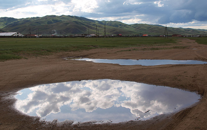 那达慕的前一天我们坐上了去Ada住的村子的大巴,在一个荒无人烟的地方跟着当地人下了车,在草原上走了十五分钟,莫名其妙地坐上了另一辆车,最终傍晚时到了这个导游书不推荐的小镇。