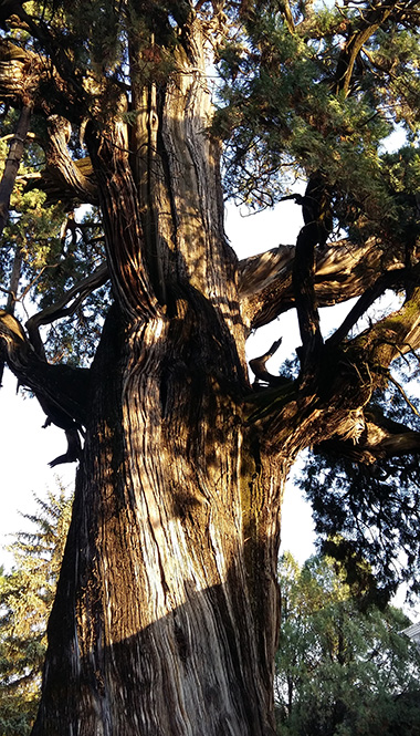 黄帝陵景区就是一座山,桥山,黄帝陵在山巅,轩辕庙在山麓。桥山整个被柏树覆盖,绝大部分是千年以上的古柏树。老祖宗在他身后留下了中国最古老保存最完整面积最大的古柏群。古柏密林整齐森严,带着庄重的礼仪和肃穆,渡尽历代劫波,一直敬默地守护着黄帝陵。