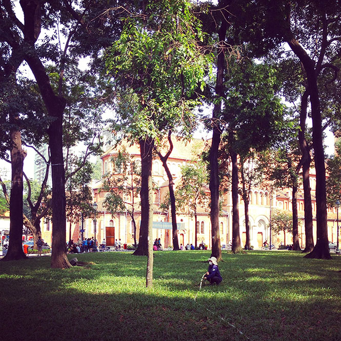 于是有些木然地去到了cathedral、去到了基督教教堂、中式寺庙和越南教堂,穿过了穿越湄公河底的隧道去远观这个城市甚至这个国家少有的摩天大楼——我误以为是战时隧道的tunnel……这位向导始终有礼貌而耐心,他的英文其实相当流利,也会不时跟我解释一些历史和当地的习惯,提出要帮我拍照。