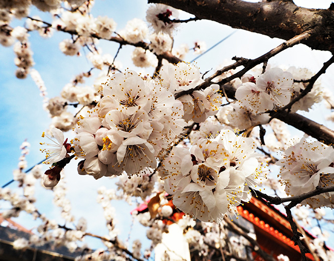 在伊犁州,最先感知春天的是伊宁市的杏花。买上一盒手工冰淇淋,在喀赞其维吾尔民居里散步,胭脂万点的杏花穿梭在粉刷着伊犁蓝的房屋之间,占尽了春风。在新疆,几乎有维族人的地方就有杏树,而维族的杏树多在有人居住的地方,院子里,马路边,公园里随处可见。天气好的时候,他们喜欢全家一起在杏树下聚会,风吹过,杏花如雪般落下,过不了几分钟,就要用手掸开杏花才能继续。当地人说:没有杏花的春天,就不是真正的春天。