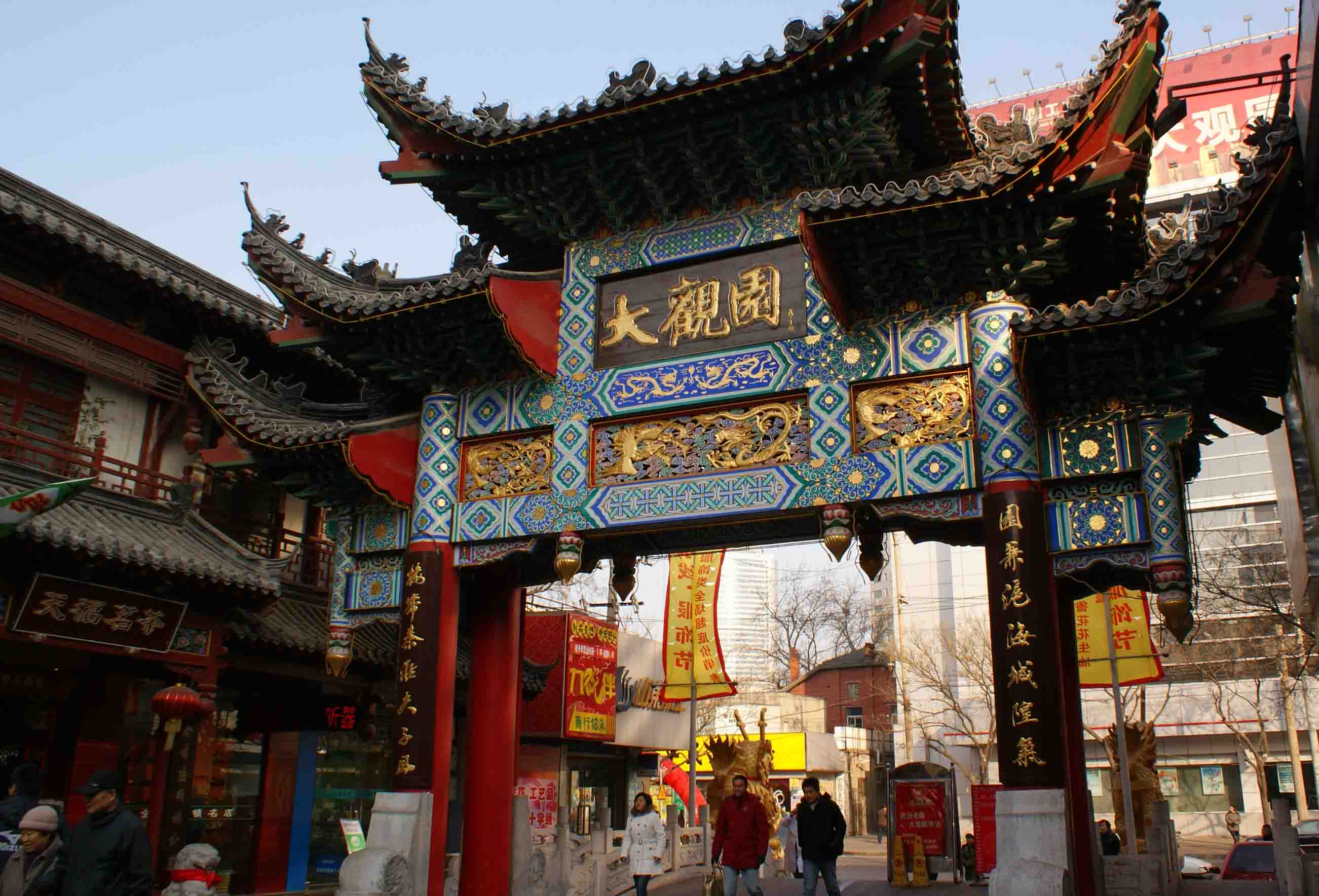 大明湖南门对面就是明府城,新建一处开放式景点,建筑都是按照明代风格新修的。很多茶社,院落之间的几个小水潭也别具风格。