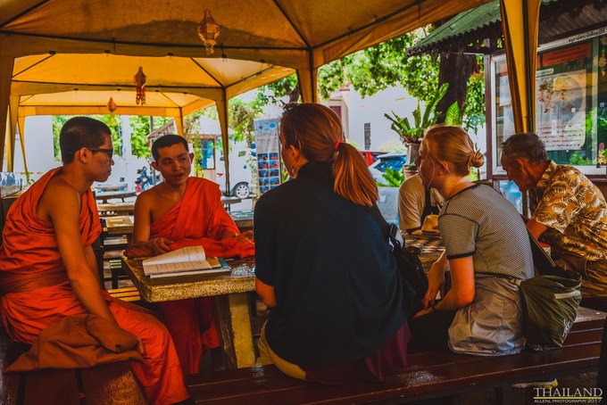 当时是在契迪龙寺,一旁走廊的僧人都很友善,见有境外游客过来,会热情地欢迎,邀请我们坐下。僧人们的英语都还不错,基本的沟通交流完全没问题,从旅行见闻、泰国文化到佛教在中国的普及程度,无所不聊——其实这超出了我的预期,因为我一开始以为他们只会跟我们聊佛教文化,后来这样的刻板印象自然瓦解。