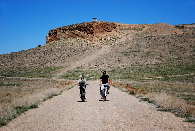 (↑ 都是在漫天黄沙中被栏杆围起来的一个孤零零土包儿)