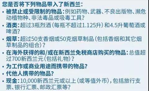 新西兰海关检验非常严格,有可能在世界各国海关中排名前五。除了常规的生鲜食品不能带之外,新西兰严格禁止入境携带蜂蜜制品、牛奶制品,香烟50根以下。所有你不确定的东西都走申报通道,如果没有申报,他们会直接罚款,金额在500纽币以上,没有情理可讲,这是近年新西兰海关的最大变化,他们已经很擅长罚款了。...显示全部