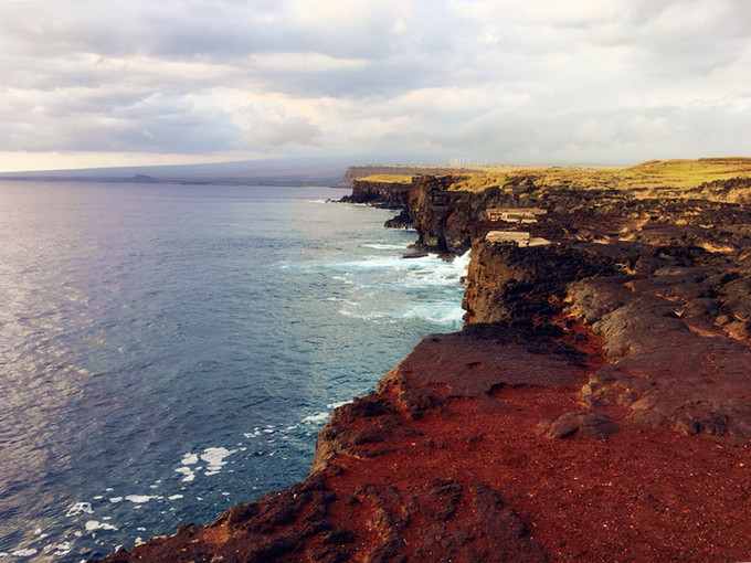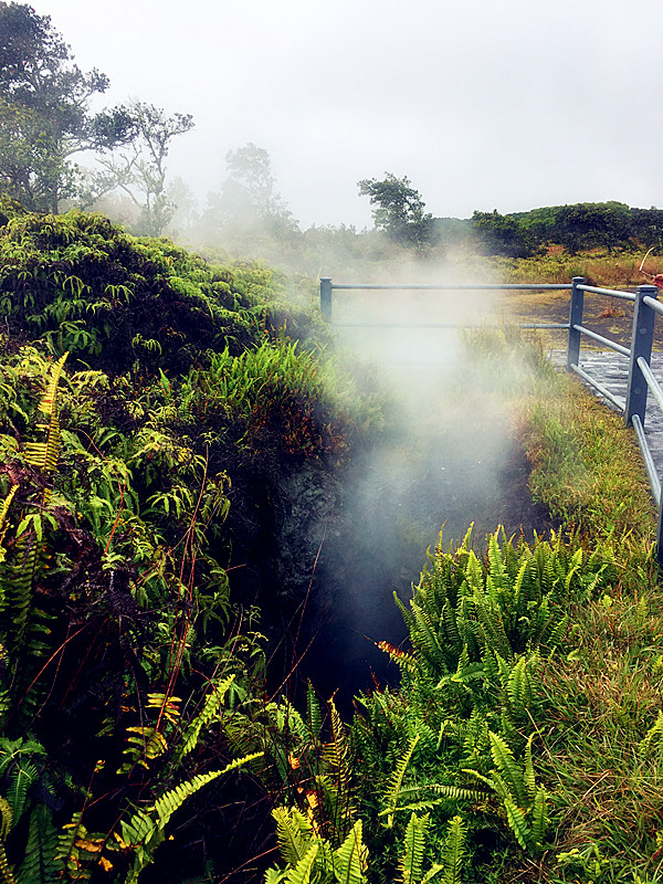 如果不想老老实实在海边吹风,大岛非常适合你花一天时间环岛游,第一站必须是火山国家公园了,这里有全世界最活跃的火山。这可能是你距离火山最近的视角,运气好可能碰上熔岩喷发,虽然我只看到热气腾腾的烟雾。