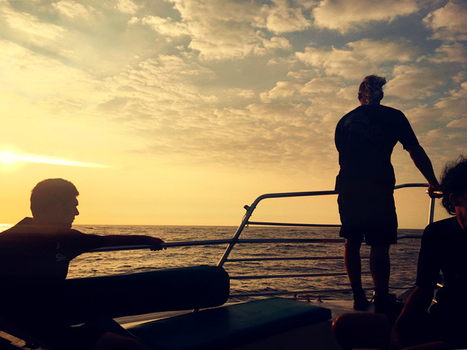 装备可以自带,也可以用他们那儿提供的。潜水服是要穿他那儿的,我是觉得呼吸管什么用自己的卫生,所以自带。到了那儿就在门口卫生间自己换好自己贴身的潜水服,或者里面穿自己泳衣也行。上船后再套一个他那儿的厚潜水服。一定一定要带一个厚点儿的外套或者厚的大的浴巾!!