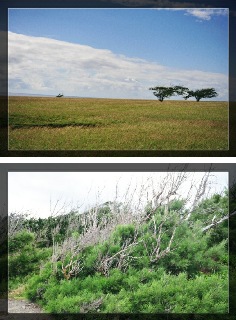 值得一提的是,沿途的植物生长很独特,可能是因为风向的问题,都导向一边。