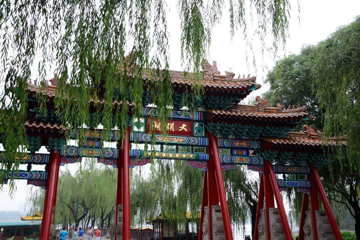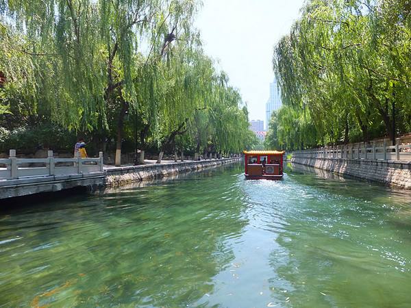 在小东湖下船后延在各提岸穿梭,来到大明湖南门。还记得趵突泉“突”字少的那一点吗?在这里的“明”字里面呢。原因问